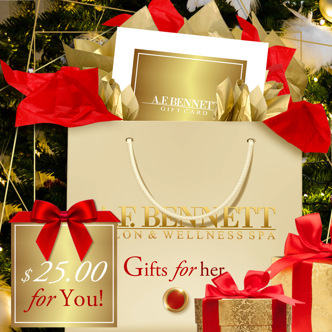 Private Herbal Steam Shower A.F. Bennett Massage A.F. Bennett Facial A.F. Bennett Gel Manicure A.F. Bennett Pedicure Blow Dry Styling